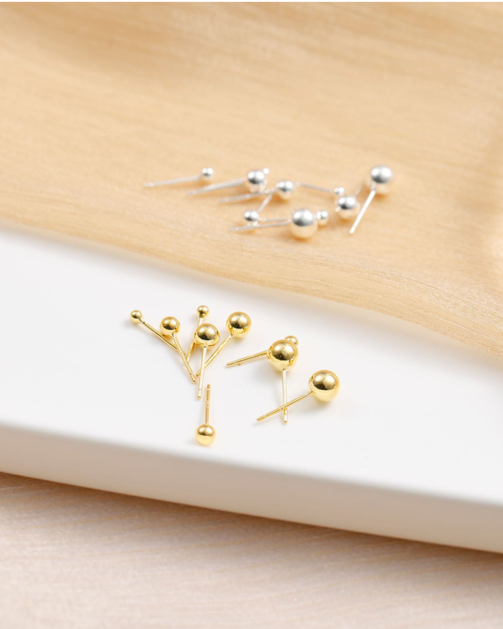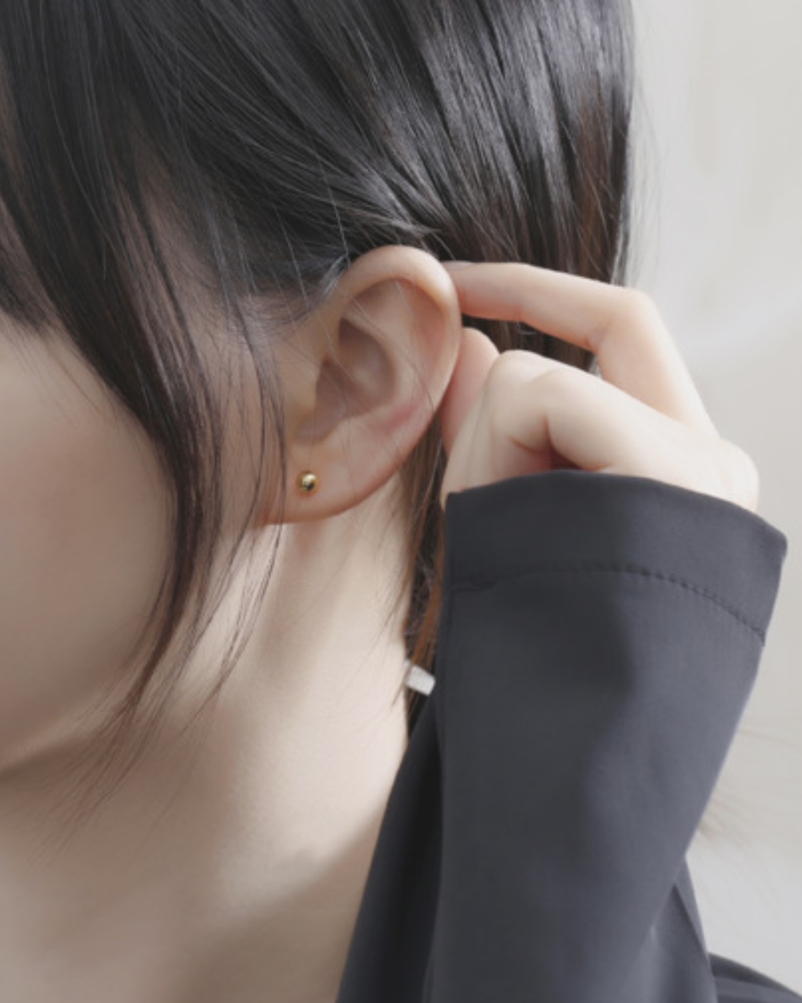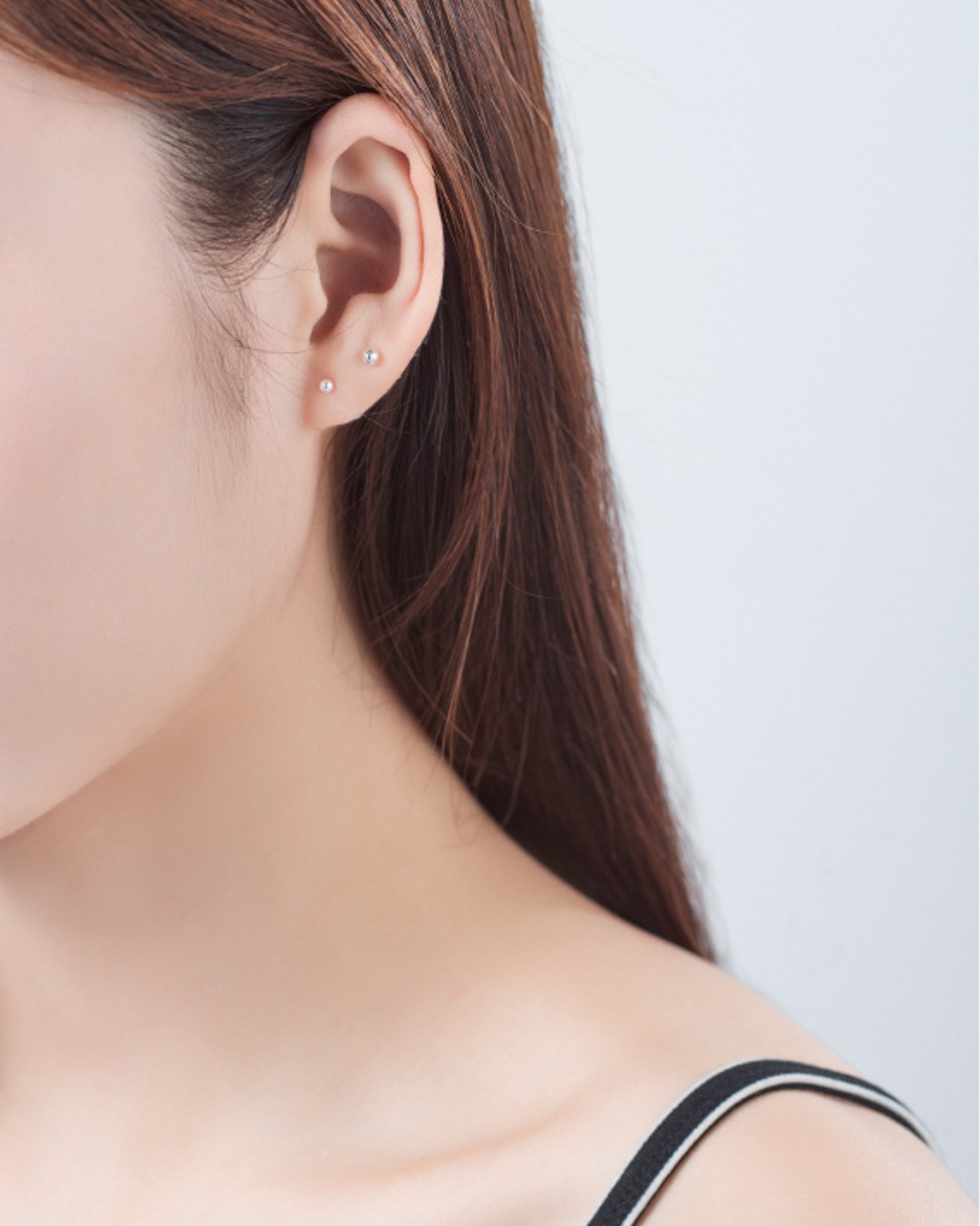 The Healing Dot Studs are tiny sterling-silver sphere earrings designed to be light, smooth, and easy on sensitive ears. Their minimal profile sits neatly against the lobe—perfect for nurturing a fresh or recovering piercing while keeping your look clean and refined.